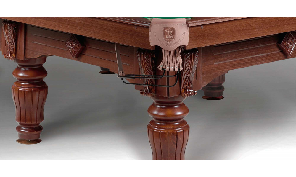 Современные технологии производства профессиональных столов, используемые в конструкции этой модели, органично вписываются в аристократичный классический дизайн с подчеркнуто строгими линиями. Лафет из деревянного массива сосны, покрытый шпоном ясеня или дуба, склеен из специальных брусков. Такая технология позволяет добиться идеальной жесткости – стол прослужит долгие годы в отличном состоянии. Резиновые амортизаторы бортов Start Super Pro рекомендованы ФБСР.
